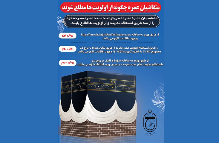 راهکار دیگر برای متقاضیان، از طریق ورود به سامانه haj.ir و کلیک بر روی بنر «استعلام اولویت های عمره مفرده » است.