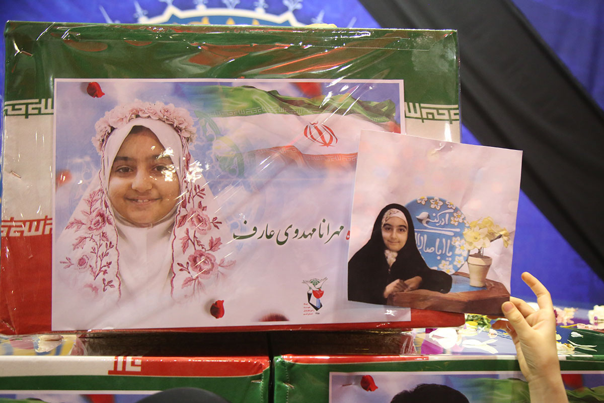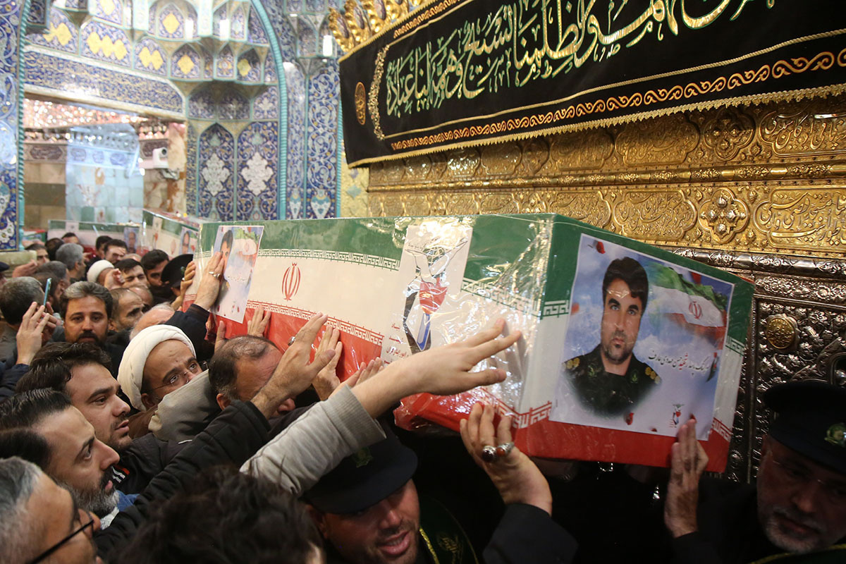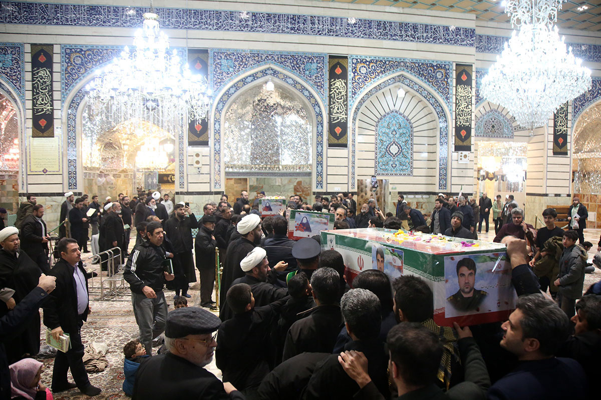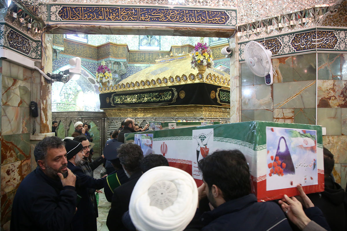 آیین وداع با پیکر مطهر هفت شهید حملات وحشیانه آمریکا و رژیم صهیونیستی به مناطق مسکونی شهر مقدس قم از جمله سه زن و یک کودک با حضور پرشور مردم در حرم مطهر حضرت فاطمه معصومه سلام الله علیها برگزار شد.
