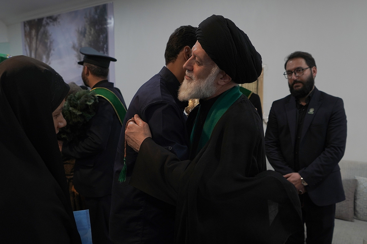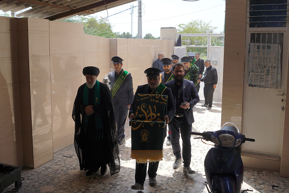 خادمان حرم مطهر حضرت فاطمه معصومه سلام الله علیها با حضور در منازل شهدای مدرسه شجره طیبه میناب، خانواده این شهدای دانش آموز را تکریم کردند.
