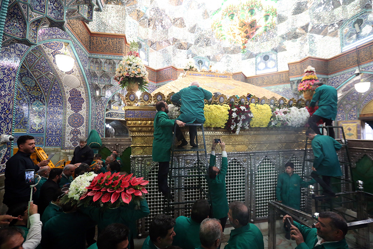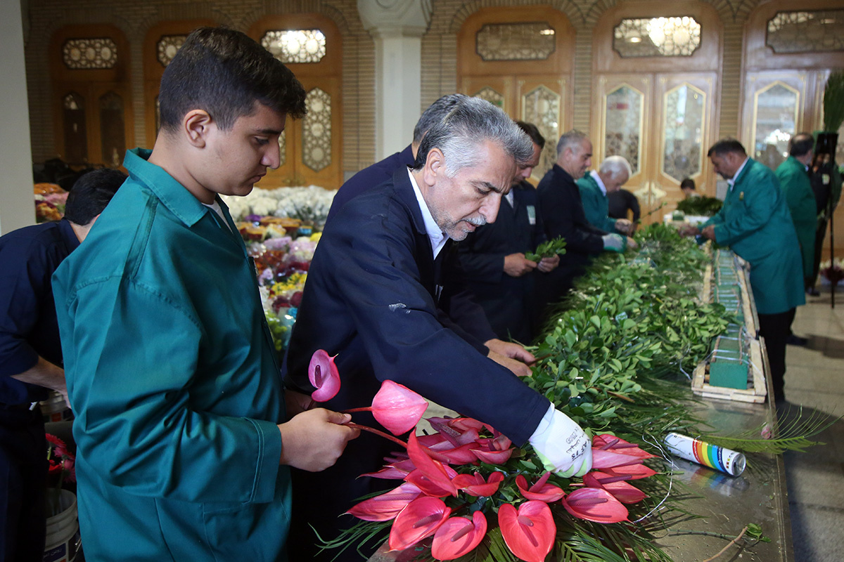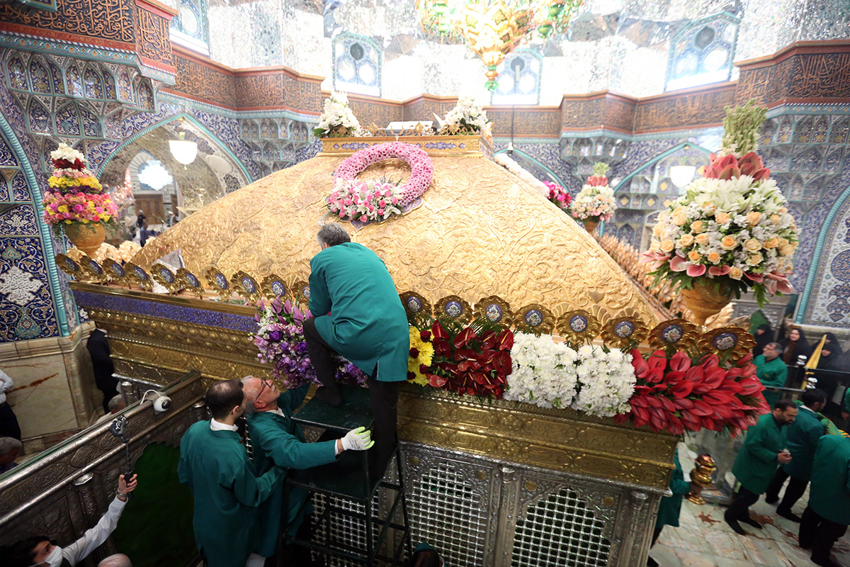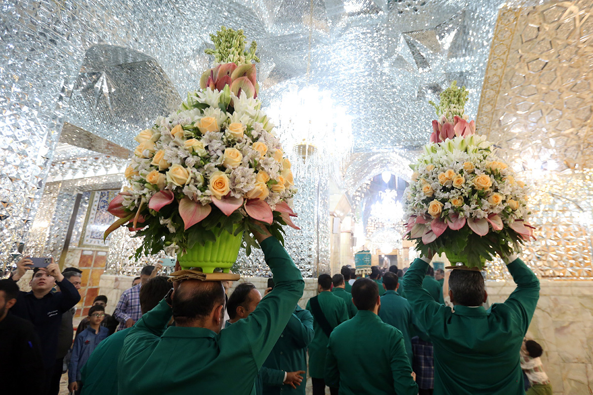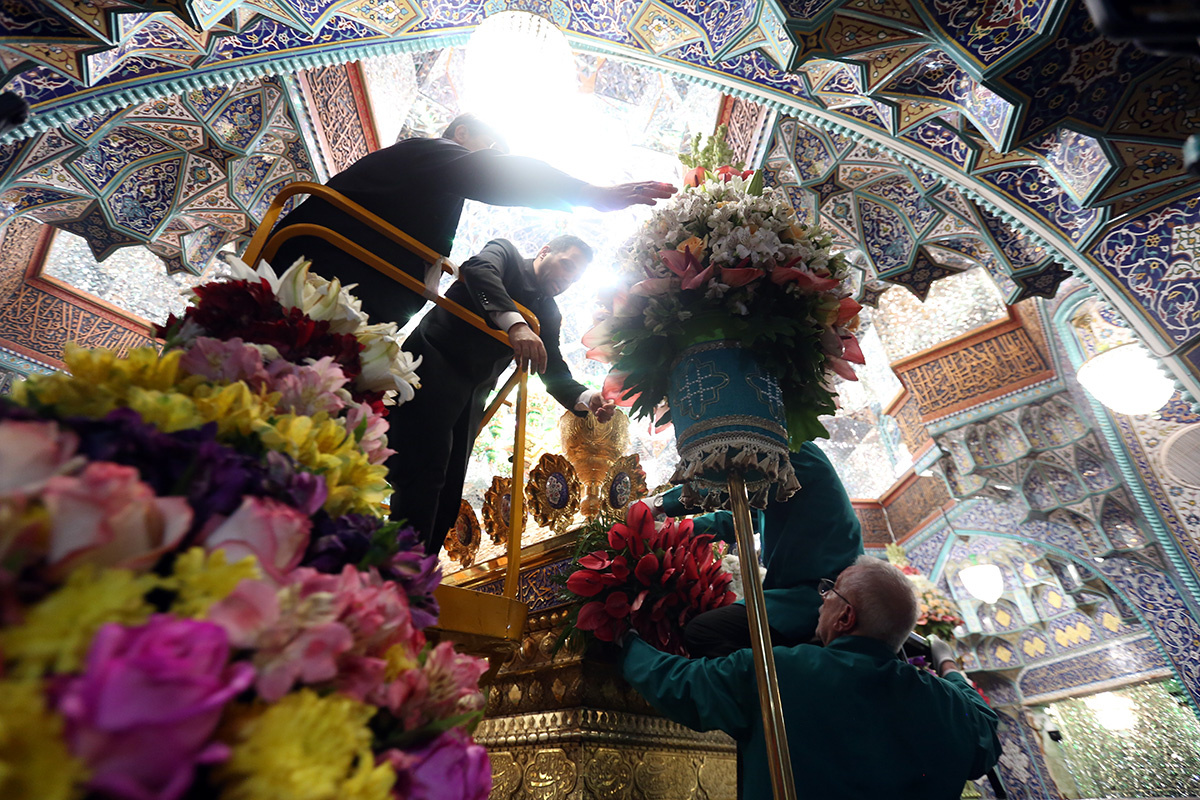 ضریح مطهر حضرت فاطمه معصومه سلام الله علیها در آستانه سالروز بزرگداشت میلاد ایشان و آغاز دهه کرامت گلآرایی شد.