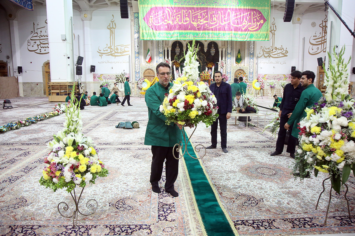 خادمان واحد گلآرایی حرم مطهر حضرت فاطمه معصومه سلاماللهعلیها در شب میلاد کریمه اهل بیت (س) شبستانهای حرم مطهر را با انواع گلهای طبیعی گل آرایی و آماده برپایی مراسم میلاد بانوی کرامت کردند.